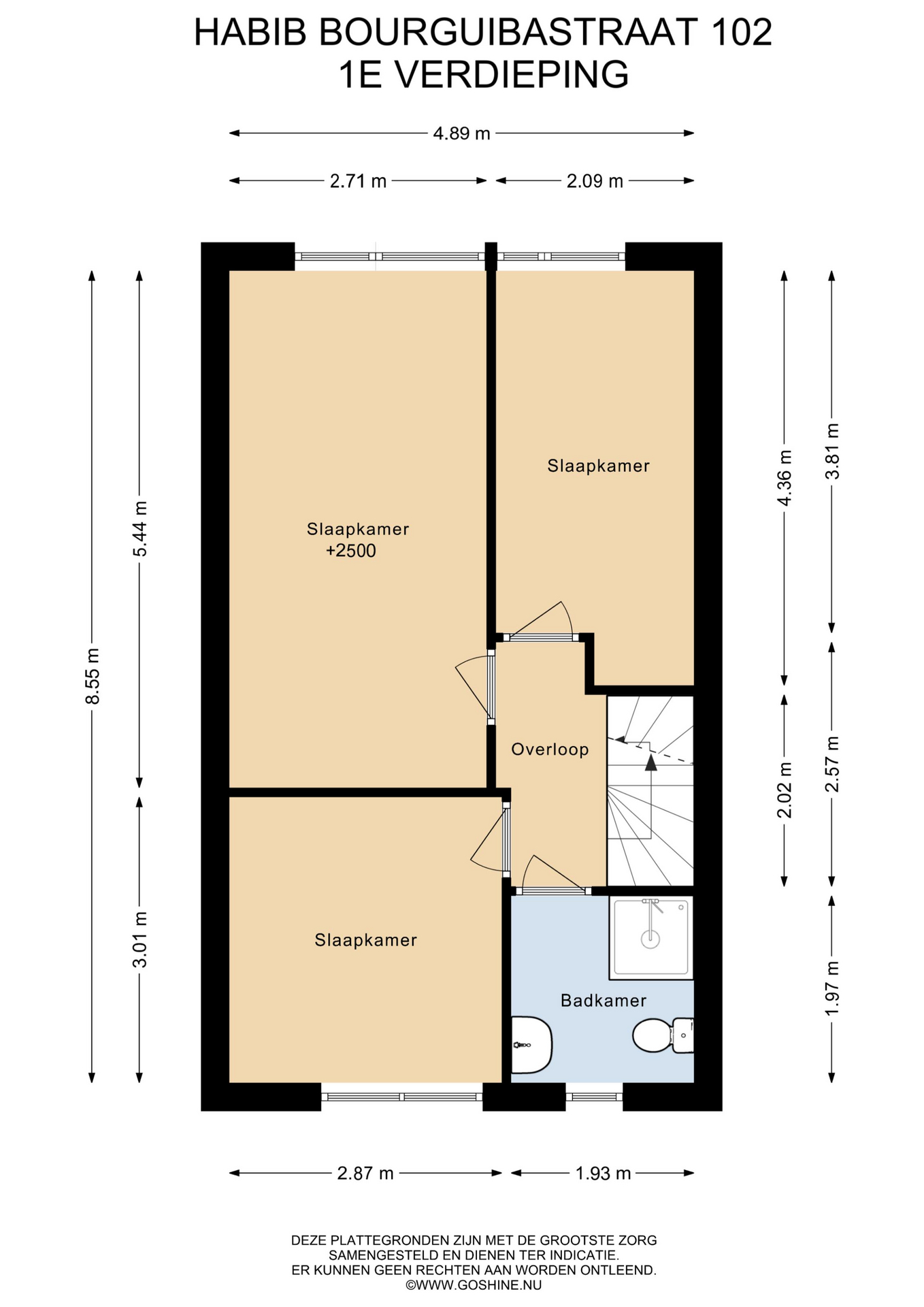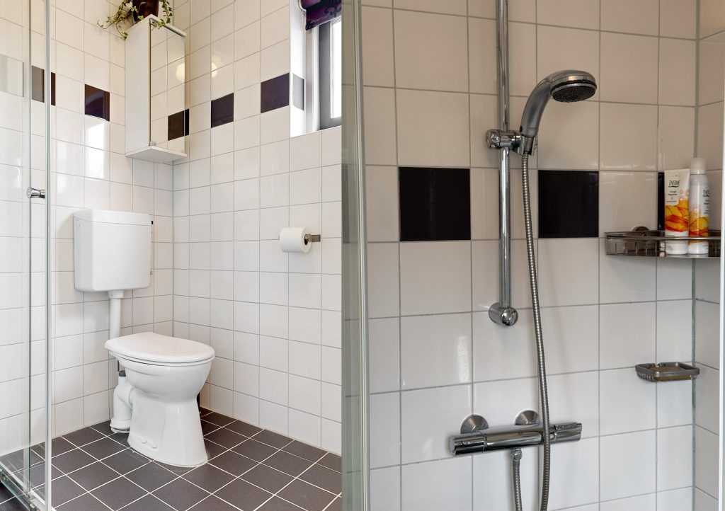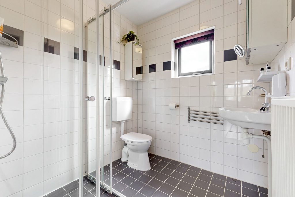 Op de eerste verdieping vind je drie slaapkamers en de badkamer. De kamers zijn goed van formaat en flexibel in te delen, bijvoorbeeld als slaap-, werk- of kinderkamer. De badkamer is functioneel ingericht met douchecabine, wastafel en toilet.