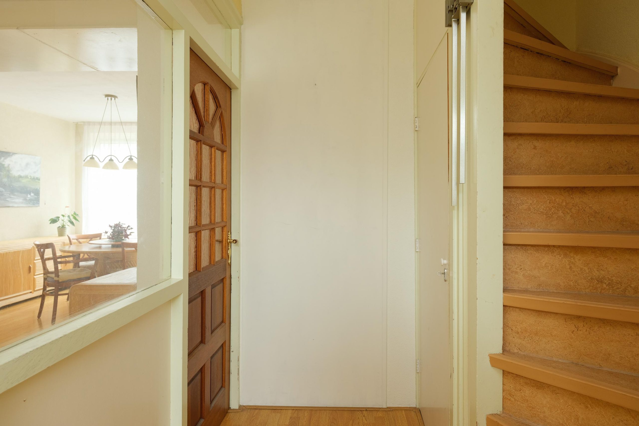 Via de eigen voortuin loop je door de voordeur de woning binnen. Je komt binnen in de ruime hal waar vandaan je toegang hebt tot de nette toiletruimte die is voorzien van net tegelwerk, hangend toilet en fonteintje. In de hal tref je tevens de meterkast en de vaste trap naar de eerste verdieping.
