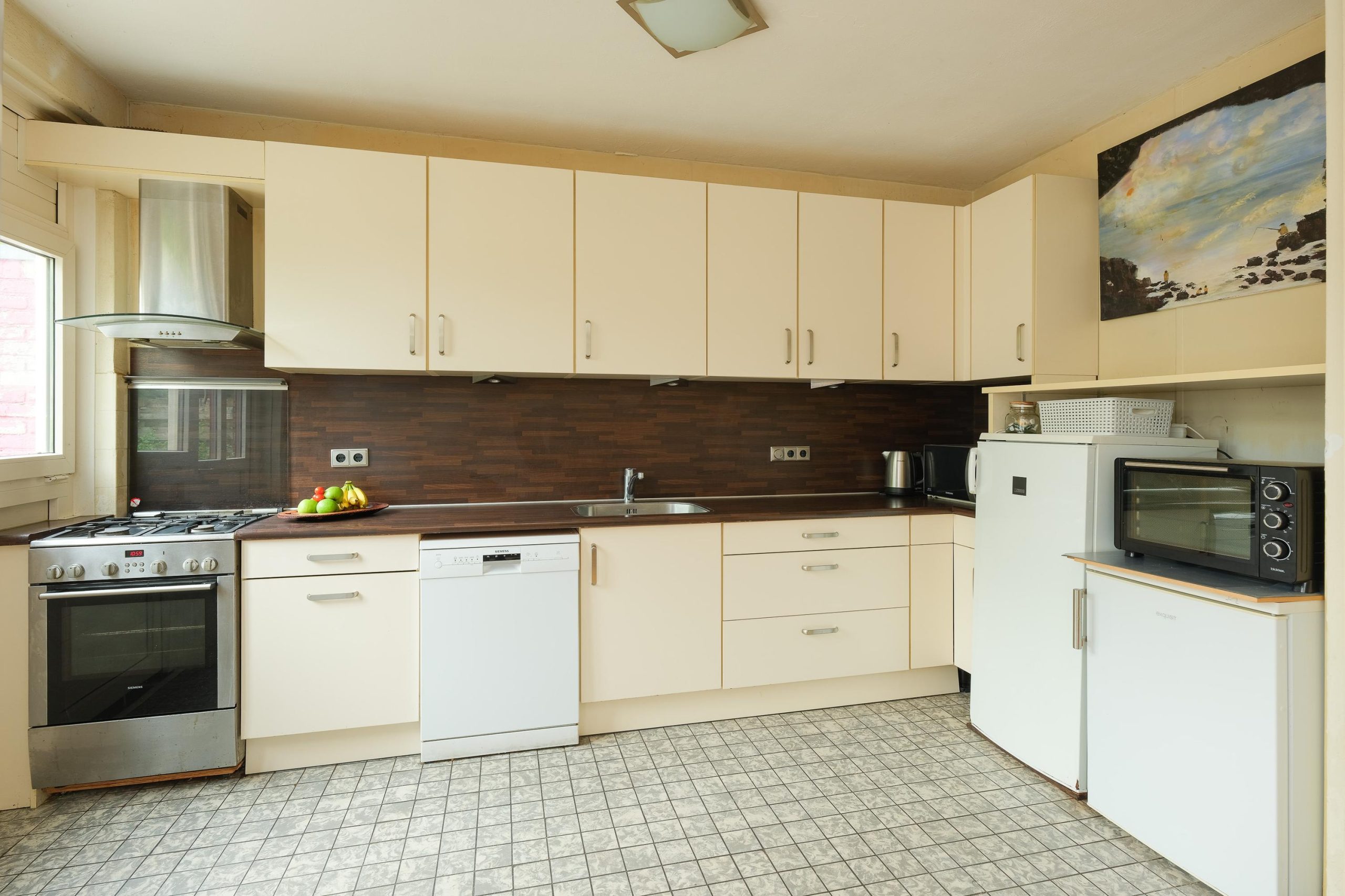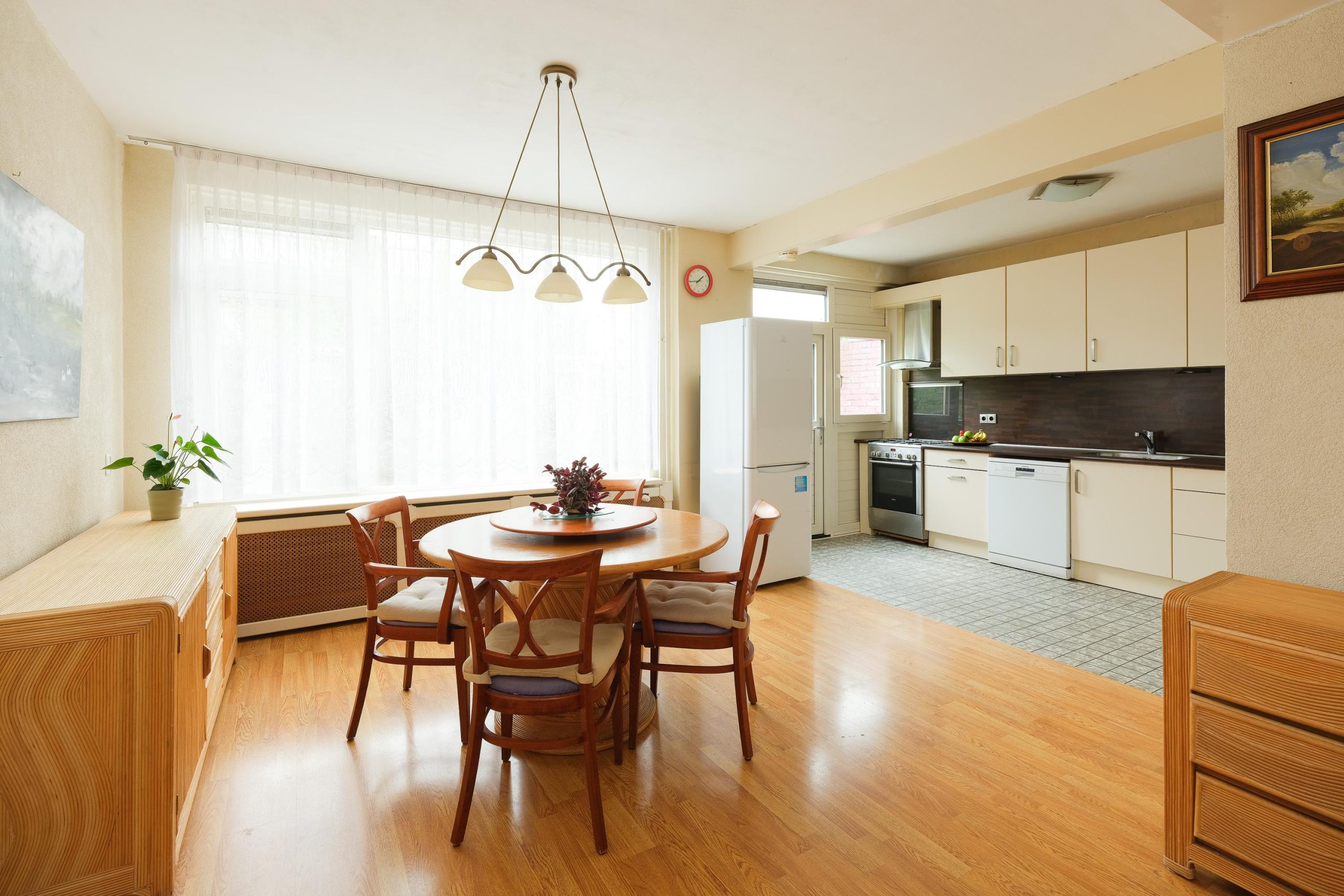 Aan de achterzijde van de woonkamer tref je de ruime open keuken waar vandaan je toegang hebt tot de ruim 11 meter diepe achtertuin. De achtertuin is netjes aangelegd en beschikt over een ruime schuur met achterom.