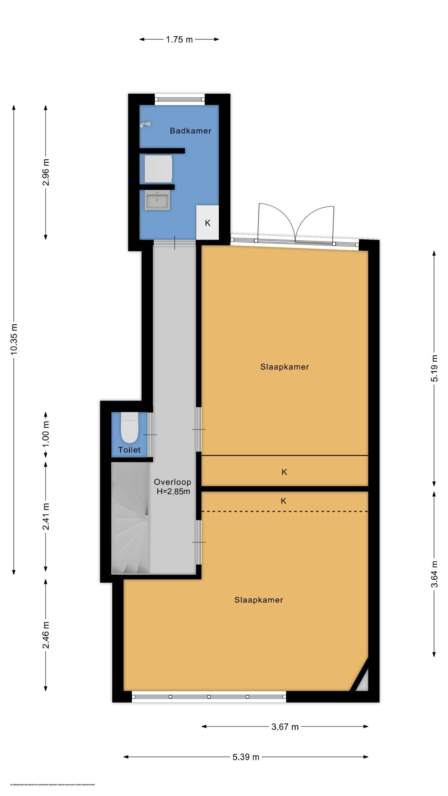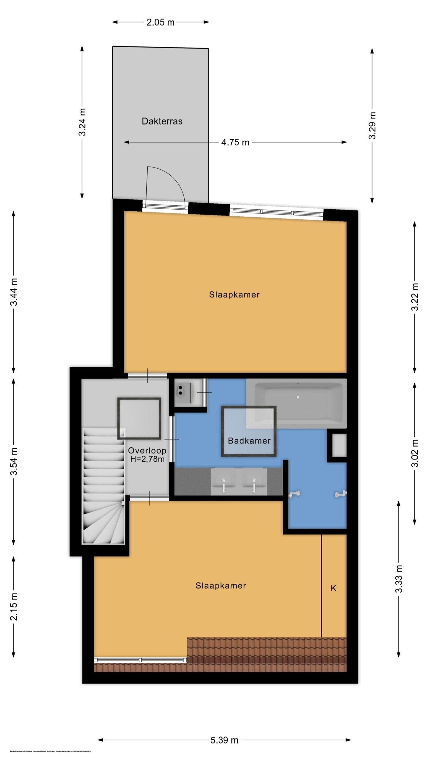Met het licht van het dakraam ga je de trap op naar de tweede verdieping. Daar kom je op de overloop met 3 deuren. De eerste gaat naar de kamer aan de achterkant met een eigen dakterras waar de hele dag de zon schijnt. In het midden is de grote badkamer met reuzebad en een douche met twee plekken. Een grote kastenwand met ruime spiegel en brede wasbak biedt plek aan zowel handdoeken, schoonmaakspullen, de was en alle bad- en douchespullen. Een lichtkoepel die open kan maakt dit een lichte plek. De handdoekradiator is er voor de te drogen handdoeken. Hier is ook de HR+-ketel in een afgesloten kast te vinden. De andere ruime slaapkamer aan de voorkant is voorzien van een grote kast gemaakt van de ‘originele’ deuren van de vroegere kamer ensuite.