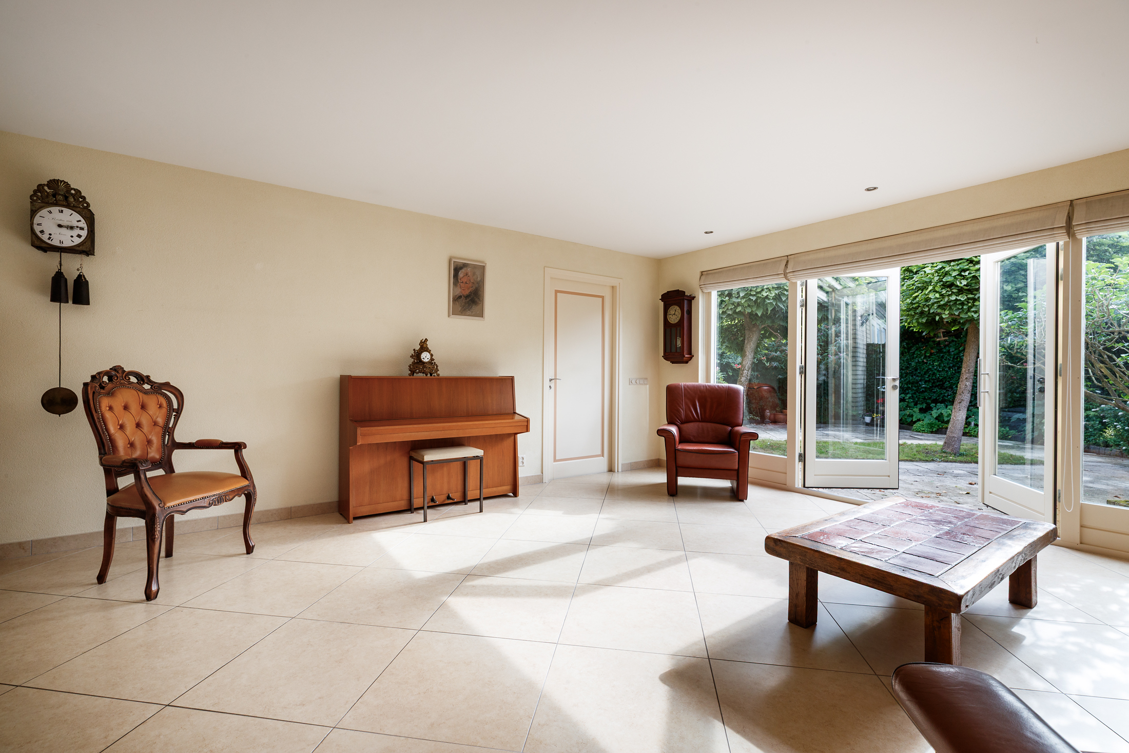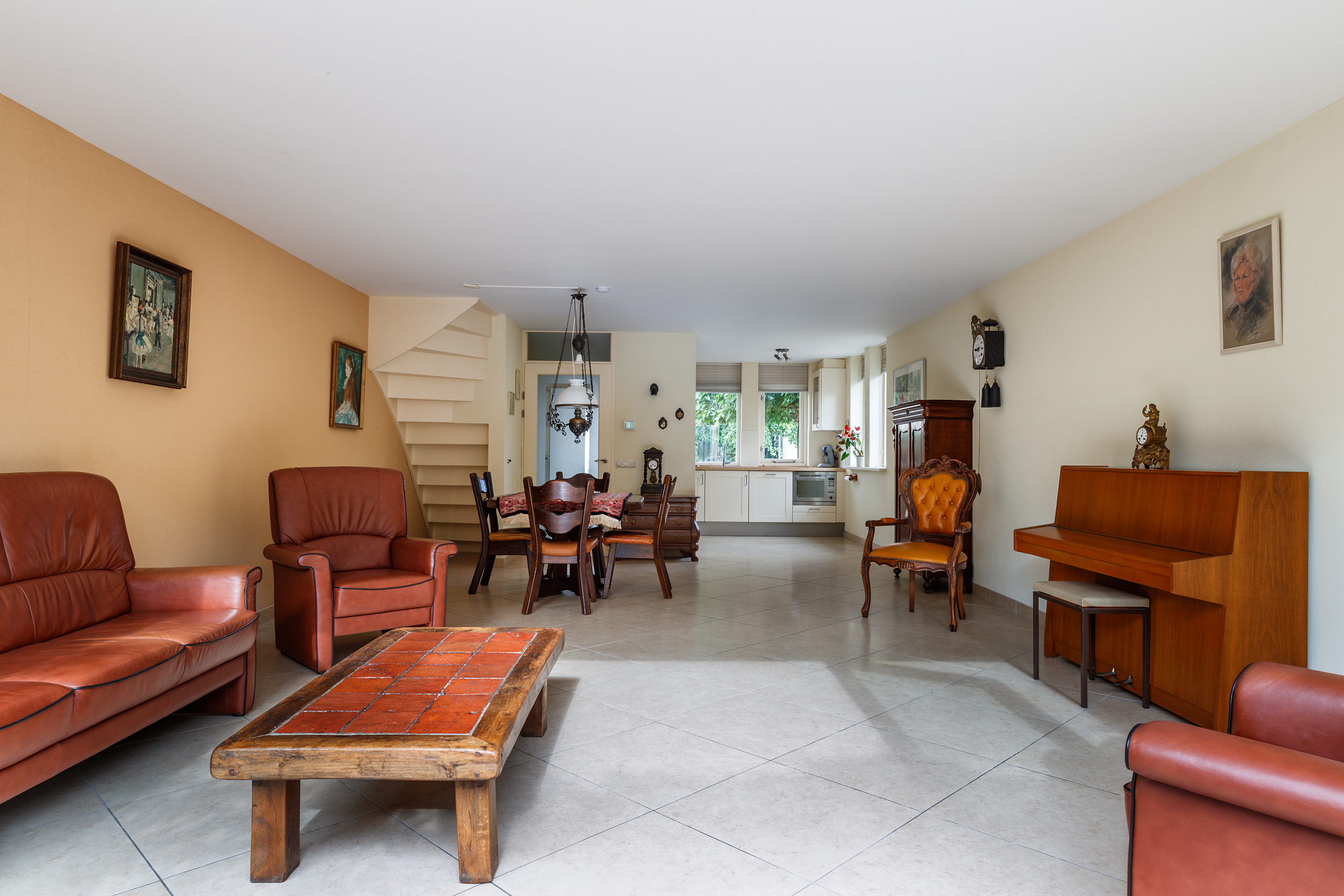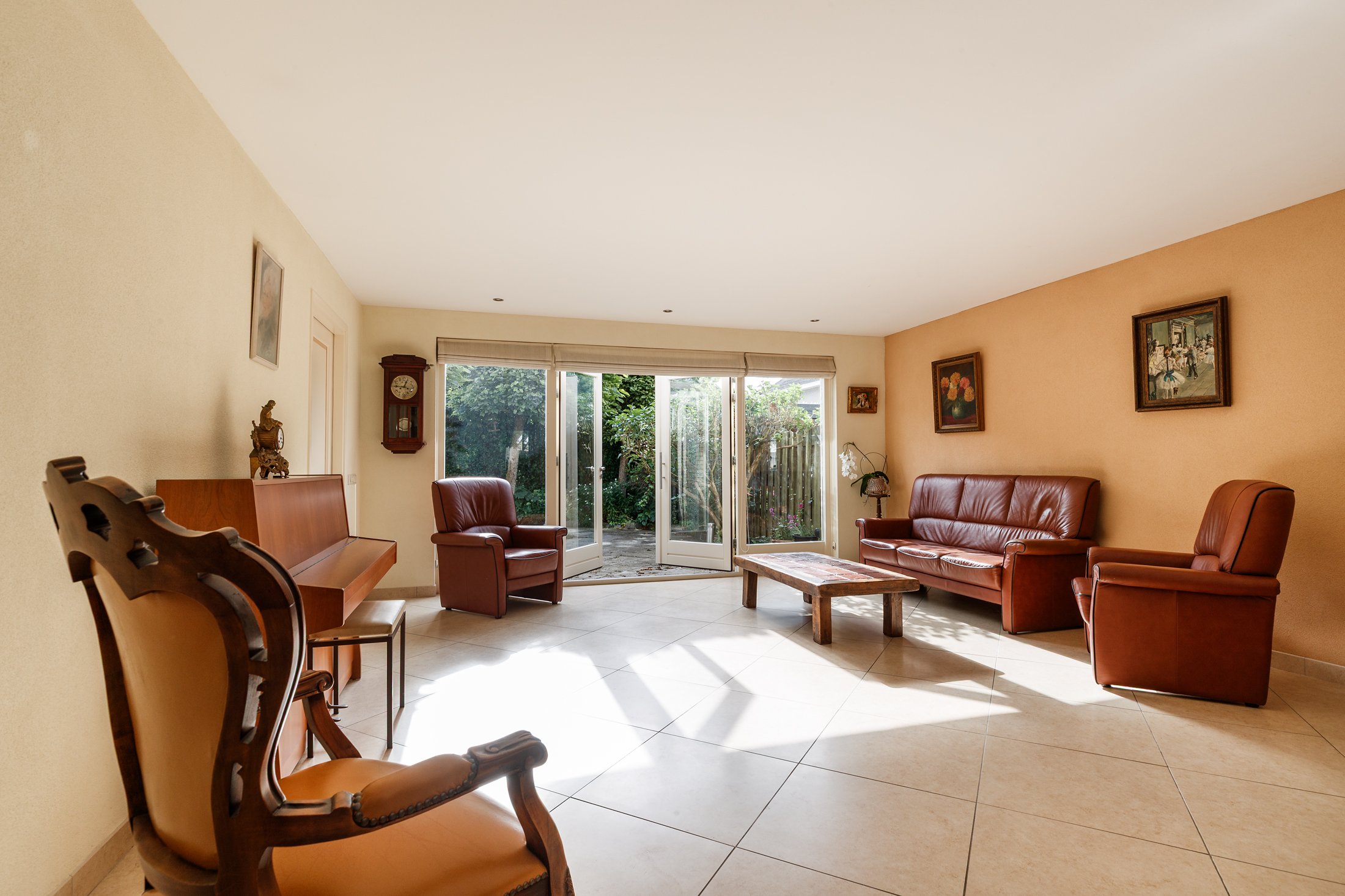 Binnen wacht een riante woonkamer, strak gestuukt plafond, vloerverwarming, en openslaande deuren naar de tuin. De grote ramen zorgen voor een heerlijke lichtinval en een fijne verbinding met buiten.