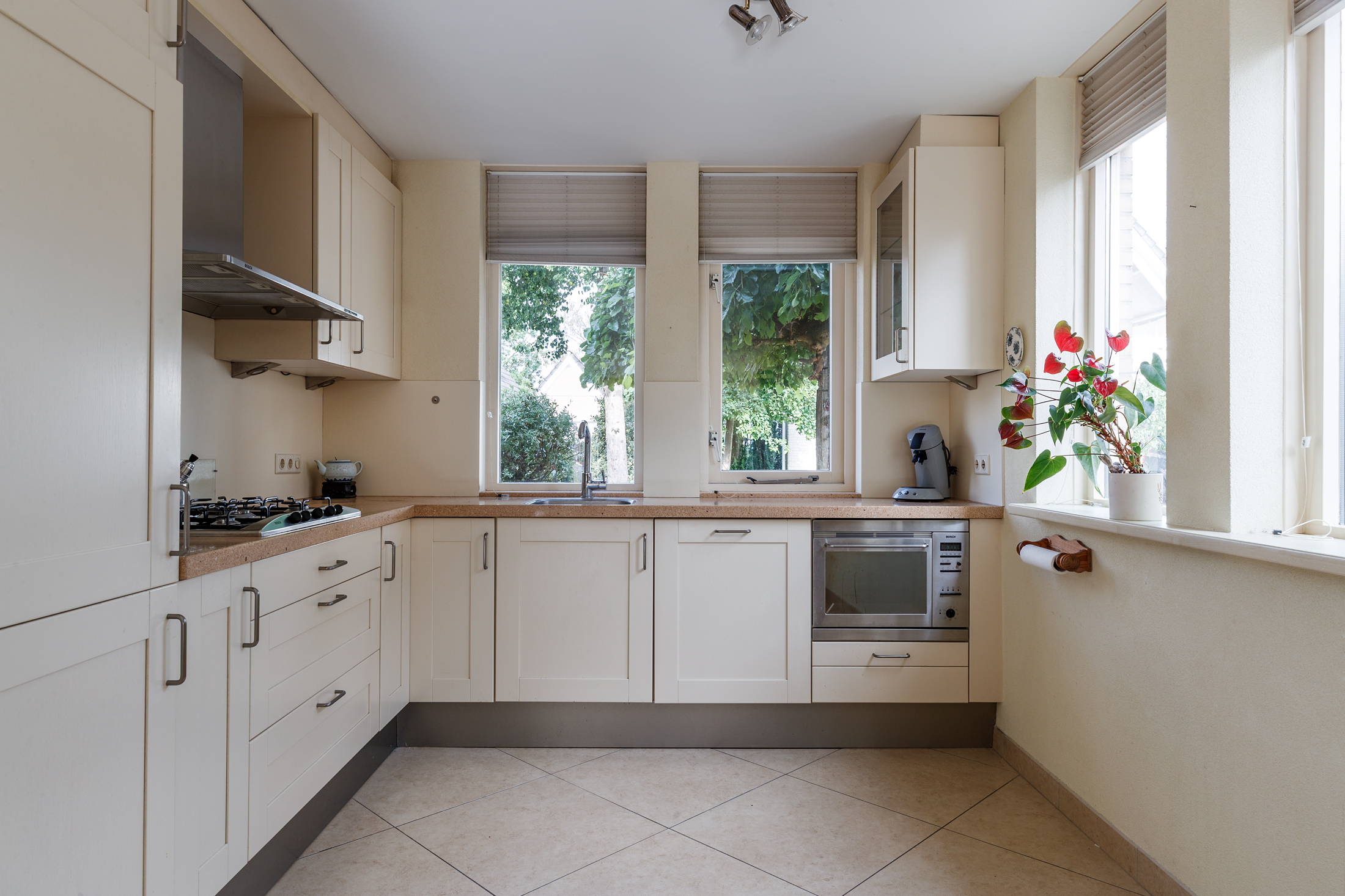 De tuin? Mooi vierkant, volop privacy én gelegen op het oosten. De keuken is dan misschien wat gedateerd, maar absoluut compleet: een koel-vriescombinatie, combi-oven, vaatwasser, 5-pits gasfornuis en een afzuigkap – alles is er. Ook hier geniet je van vloerverwarming.