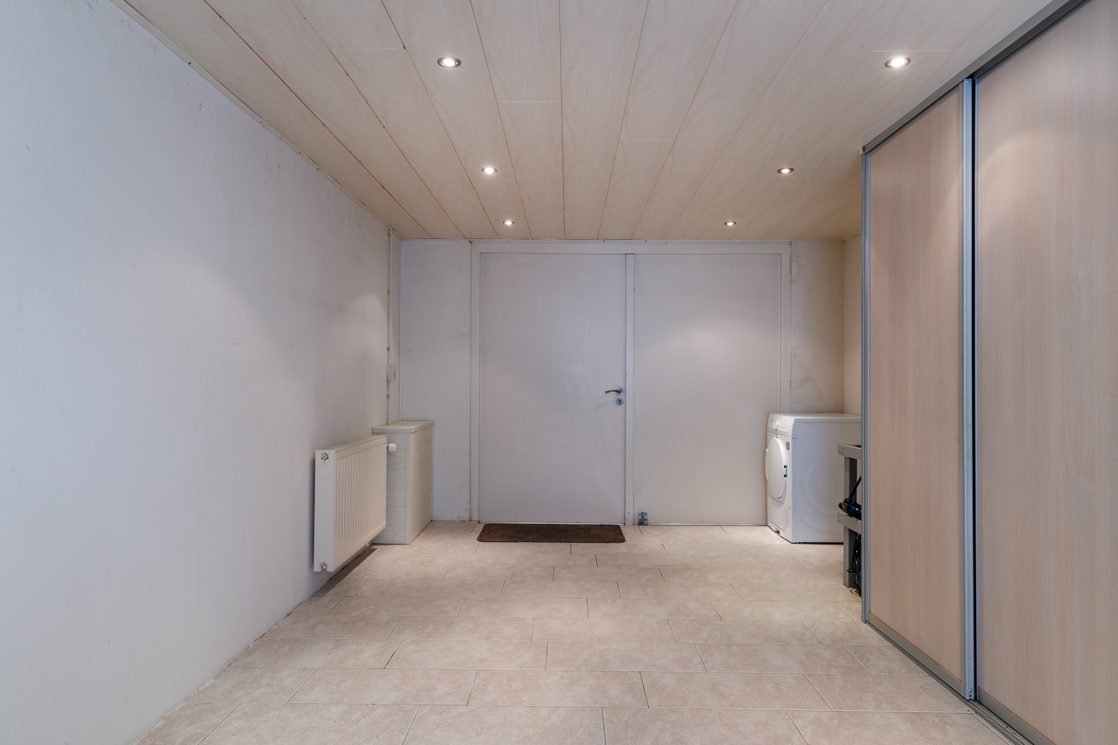 Bij aankomst valt meteen de brede oprit op, waar je met gemak je auto kunt parkeren. Daarnaast heb je nog een ruime, betegelde garage, compleet met een handige vaste kast én binnendoor bereikbaar vanuit de woning en tuin. ideaal!